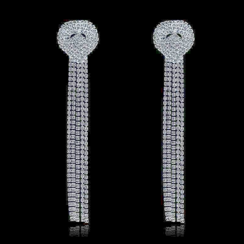 Серьги со стразами для фитнес-бикини с максимальным визуальным эффектом. Основание в форме, напоминающей сердце, со свисающими нитями из страз. Длина 12.8 см, ширина основы 2,5 см