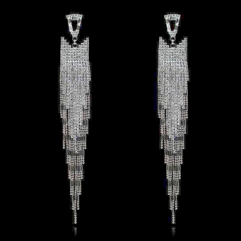 Длинные серьги со стразами для фитнес-бикини. В жизни смотрятся гораздо эффектнее. Будут невероятно сверкать под софитами. Длина сережек – 17 см