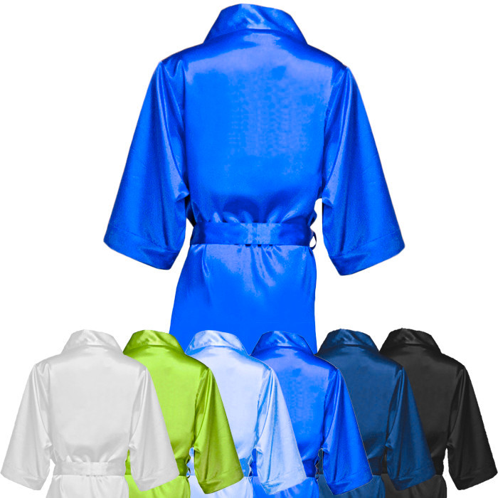 Атласный халат для фитнес-бикини без надписи (Синий)